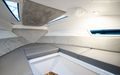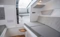 Førerposisjonen er virkelig lekker, med mørkt dashbord og informativ instrumentering. Fra cockpiten er det store trinn som gjør det enkelt og trygt å komme seg opp på fordekket. Til venstre for inngangen til kabinen er et uttrekkbart kokeapparat med en liten vask på toppen.