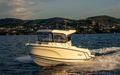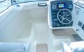 Tilbring en dag på vannet med alle fasiliteter for å holde deg komfortabel – en kjøleskapsskuff for drikke og snacks, innendørs og utendørs sitteplasser, og fasiliteter for når naturen krever det. Slapp av på dekk med et bord som trygt stues når det ikke er i bruk, sitteplasser akter og et benkesete som kan legges ned på babord side. Ikke la dårlig vær holde deg ved kaien, med konvertible kabinseter som inkluderer et tilgjengelig ekstra sete, eller konverter kabinen til soverom for en rask siesta eller en overnatting.