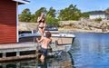 - Store badeplattformer gjør det enkelt og trygt å komme inn og ut av vannet.