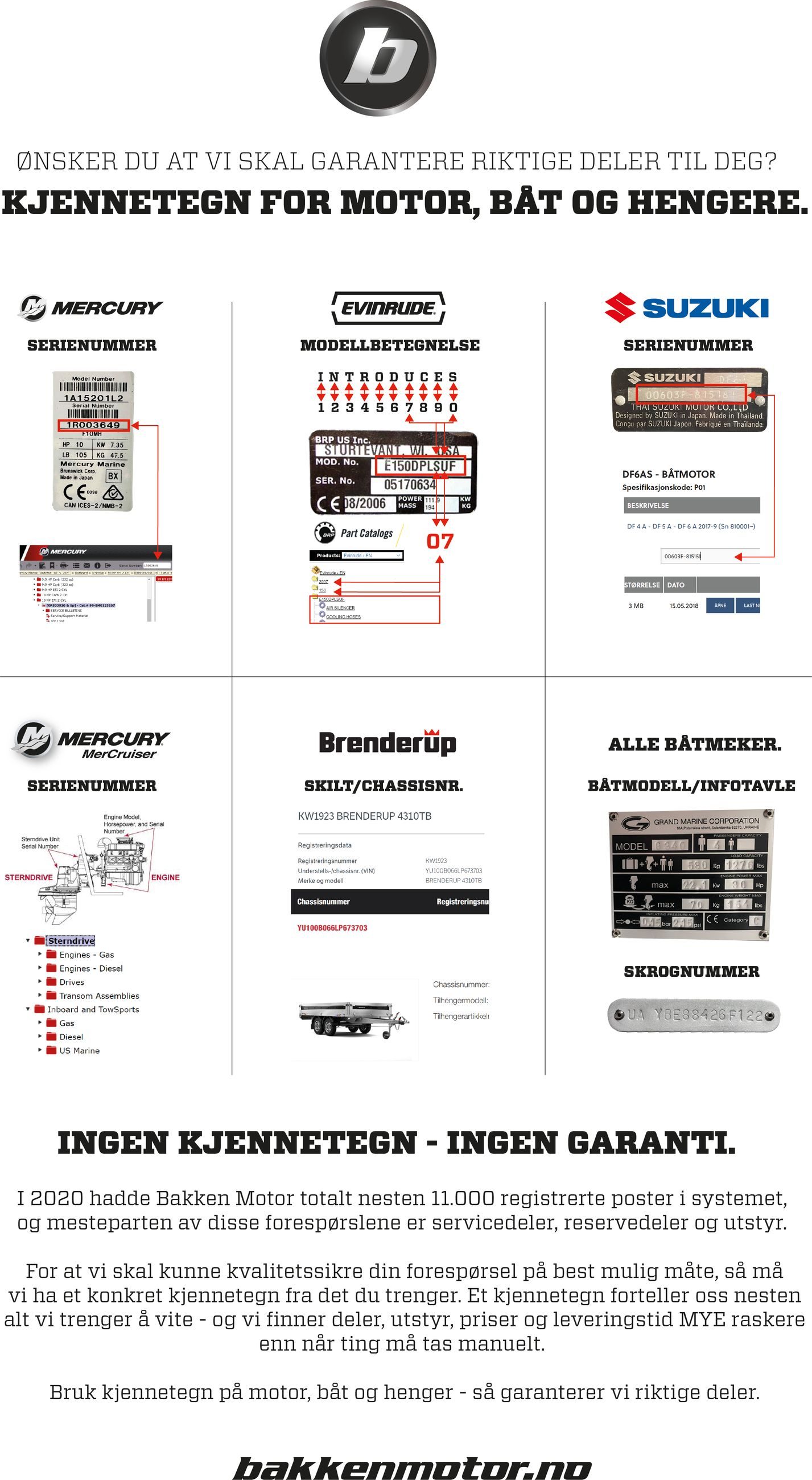 Under normale omstendigheter vil båten identifiseres ved hjelp av den lett lesbare inngraveringen, men dersom forholdene krever det kan merkekoden verifiseres ved å avlese ett av mikromerkene. Alt som skal til for å identifisere din båt eller motor er å finne ett av disse.